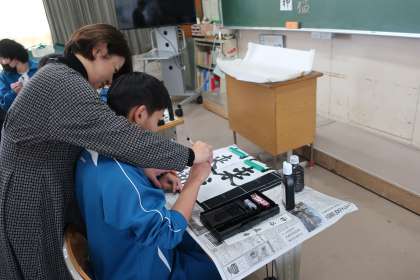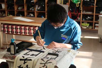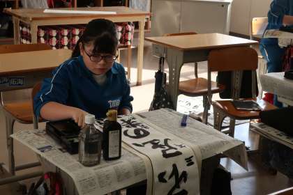 書き初めの練習に取り組んでいました。作品が出来上がるまで、しっかりと集中して書き込んでいました。