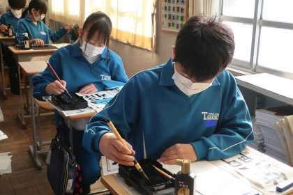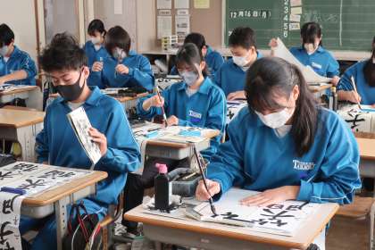 今回は、書道ボランティアの方をお招きしての書き初めの練習でした。筆の使い方や運び方、文字の形やバランスなど、それぞれで的確なアドバイスをいただけたおかげで、作品の出来もやる気もアップしていたようです。