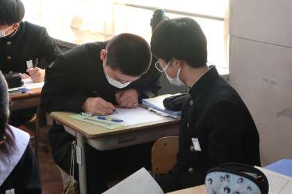 12/16 3-4 受験に備えて 4 公開日 2024/12/16 更新日 2024/12/16 各学年から 3年4組の数学の授業の様子です。 入試でよく出る問題に取り組んでいました。正解を導き出す方法をはじめ、解く際のきっかけとなる考え方、早く正解にたどりつく方法など、仲間や先生のアドバイスを参考に一生懸命取り組んでいました。