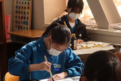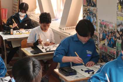 今回は、書道ボランティアの方をお招きしての書き初めの練習でした。筆の使い方や運び方、文字の形やバランスなど、それぞれで的確なアドバイスをいただけたおかげで、作品の出来もやる気もアップしていたようです。