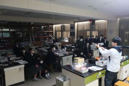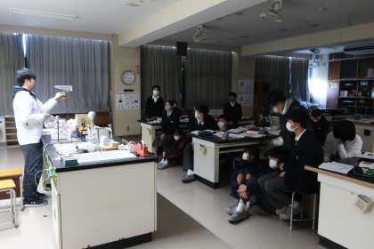 静電気に関しての学習で、「真空放電」について実際の様子を見て、イメージしながら学んでいました。