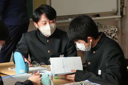 『三平方の定理』について、単に公式としてではなく、発見したピタゴラスの証明の方法やそのほかの証明の仕方について、考え方のアイデアを出し合っていました。