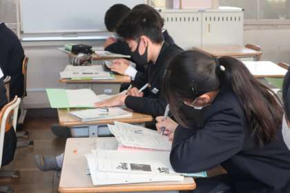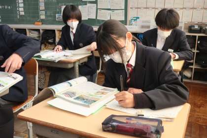 2年4組の社会・地理分野の授業の様子です。