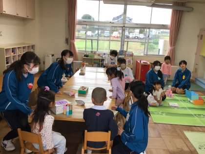 生徒たちの快く引き受けてくださった高美こども園の園長様をはじめ、職員のみなさまに心から感謝いたします。また、中学生の移動の際の交通安全を見守ってくださった保護者のみなさまにも、重ねて感謝いたします。