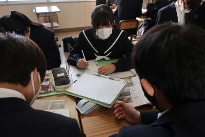 2年5組の社会・歴史分野の授業の様子です。