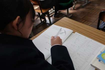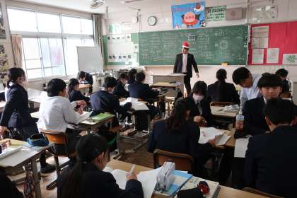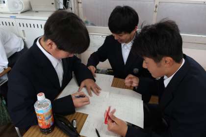 1月末に実施される『学習診断テスト』に向け、過去の問題に挑戦していました。教科担任のパフォーマンスに惑わされることなく(?)、仲間からアドバイスをもらいながら真剣に取り組んでいました。