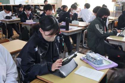 1月末に実施される『学習診断テスト』に向け、過去の問題を確認し、おおよその様子をつかんでいきます。冬休みにどんな勉強をするとよいかを考えながら、さっそく行動に移している生徒が多くいて感心しました。
