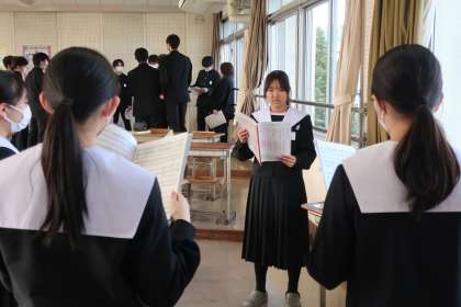 12/19 3-1 卒業の歌 3 公開日 2024/12/18 更新日 2024/12/18 各学年から 3年1組の音楽の授業の様子です。 卒業式で歌う曲の練習に取り組んでいました。校歌は間隔を開けて、それぞれがしっかり歌詞を歌いきることができるか確認しています。その後、卒業の歌である『証(あかし)』の練習は、パートごとに分かれて音程の確認をしていました。