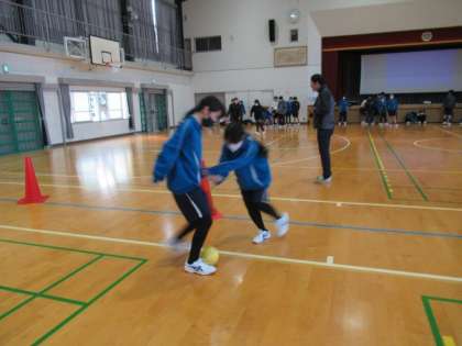 クラスの絆を確かめ合い、学年全員のつながりを実感する学年レク・1年生の様子です。