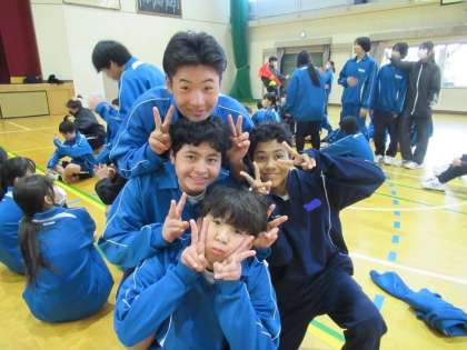 クラスの絆を確かめ合い、学年全員のつながりを実感する学年レク・1年生の様子です。