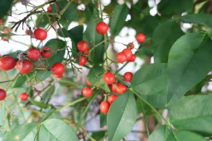 1棟と2棟の間の中庭に植わるナンテン(南天)。