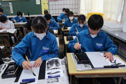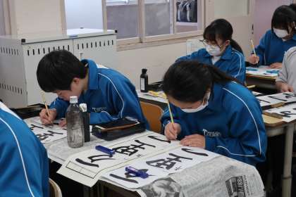題目の文字には「一つの目標に向かって努力し続けること」という意味があります。来年から「先輩」と呼ばれる立場になることを意識しつつ、これからの高岡中を引っ張っていけるよう、力も十分に蓄えてほしいと思います。