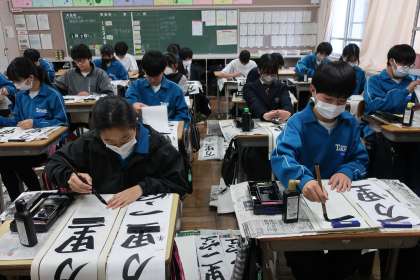 1/7 1-4 一筆に思いを込めて… 2 公開日 2025/01/07 更新日 2025/01/07 各学年から 本日の2・3時間目に行われた書き初め大会・1年4組の様子です。 1年生の題目は「万里一空」。 練習の成果を発揮しようと集中して取り組んでいました。 題目の文字には「一つの目標に向かって努力し続けること」という意味があります。来年から「先輩」と呼ばれる立場になることを意識しつつ、これからの高岡中を引っ張っていけるよう、力も十分に蓄えてほしいと思います。