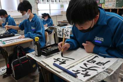 本日の2・3時間目に行われた書き初め大会・1,2学級の様子です。