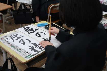 多くの生徒が入試を間近に控え、4月からの新しい環境での生活を想像しながら筆を走らせていました。