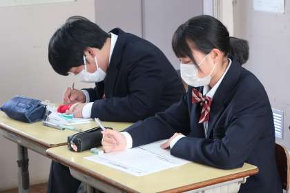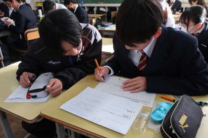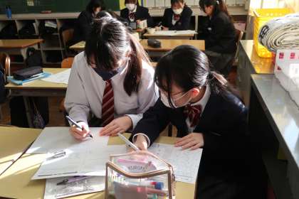 今月末に実施される『学習診断テスト』。それに向けた冬休みの学習の定着具合を確認するため、仲間の考えも参考にしながらプリントに取り組んでいました。