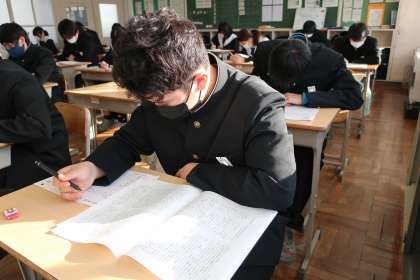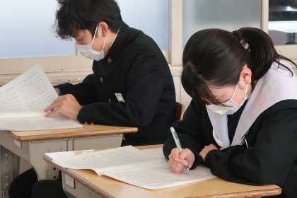 冬休み中の学習の成果を確かめるプリントに取り組んでいました。