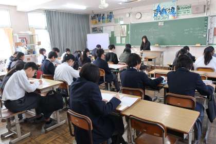 冬休み前に取り組んだ単元のまとめのプリントが返却され、学習診断テストに向けて解説が行われていました。