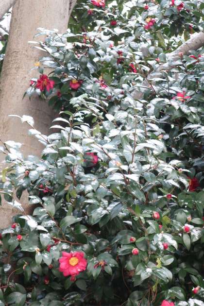 全員無事に登校でき、胸をなでおろして校内を見て回ると、うっすら雪化粧の景色をたくさん見ることができました。