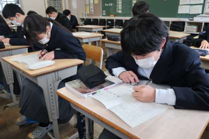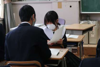 今月末の学習診断テストに向け、それぞれが納得のいく結果を手にできるよう、仲間とともに対策プリントに取り組んでいました。