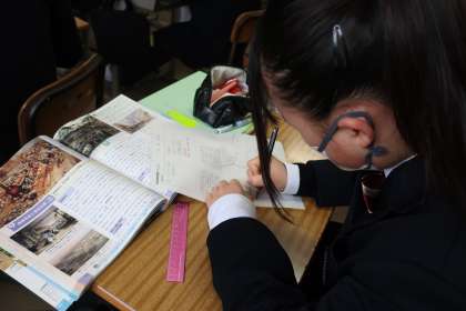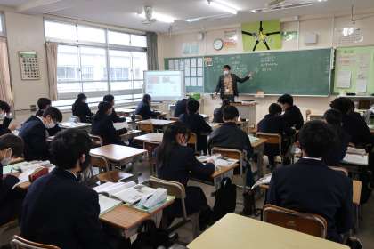 2年5組の社会・歴史分野の授業の様子です。