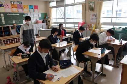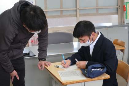 生徒が先生役になり、プリントの答え合わせをしていました。しっかりと採点、コメントまで添えて大活躍でした。