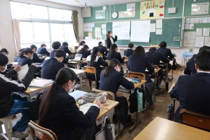 平行四辺形の性質を確認しながら、証明問題に取り組んでいました。