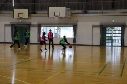 写真は、バスケットボール部の活動の様子です。