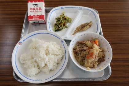 1/15 今日の給食 公開日 2025/01/24 更新日 2025/01/24 特別活動 今日から一週間は、「全国学校給食週間」です。 今日の献立は ————— 肉じゃが、いち大豆あえ、わかさぎのから揚げ、ごはん、牛乳 でした。 *エネルギー:804kcal たんぱく質:31.0g