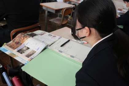 2年4組の社会・歴史分野の授業の様子です。