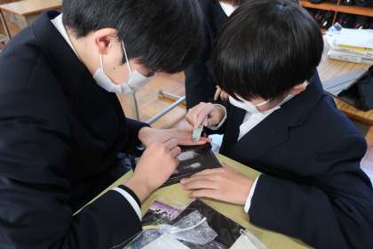 メタリックサインボードの作品づくりに取り組んでいました。