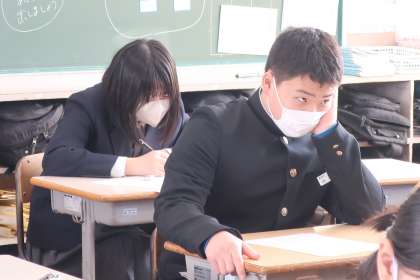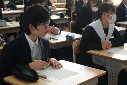 1/16 2-4 学診に向けて 3 公開日 2025/01/16 更新日 2025/01/16 各学年から 2年4組の数学の授業の様子です。 今月末の学習診断テストに向けて取り組んだ対策プリントの解説が行われていました。