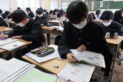 3年4組の社会・公民分野の授業の様子です。