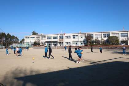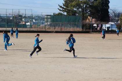 タグラグビーの学習に入り、体力づくりを兼ねた10分間のランニングにはじまり、タグ取りの練習を兼ねた鬼ごっこ、そしてようやくキャッチボールといったメニューでしたが、お互いに声をかけ合って楽しそうに活動している姿が印象的でした。