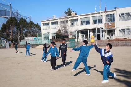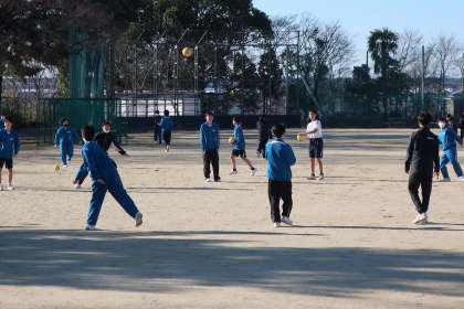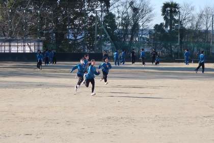 タグラグビーの学習に入り、体力づくりを兼ねた10分間のランニングにはじまり、タグ取りの練習を兼ねた鬼ごっこ、そしてようやくキャッチボールといったメニューでしたが、お互いに声をかけ合って楽しそうに活動している姿が印象的でした。