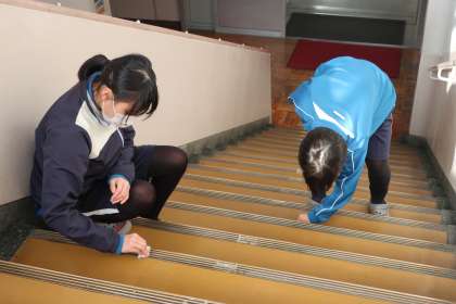 卒業まであと2か月の3年生。学年レクのイベントの準備をしたり、校内の環境美化に取り組んでいます。様々な活動を分担し、お互いの活動を責任とプライドをもって行っています。