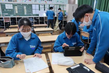 卒業まであと2か月の3年生。学年レクのイベントの準備をしたり、校内の環境美化に取り組んでいます。様々な活動を分担し、お互いの活動を責任とプライドをもって行っています。