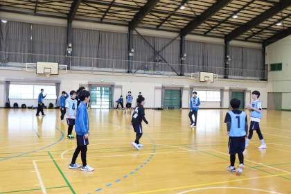 ゲーム形式の練習メニューで、プレーしながらルールや攻守のパターンを確認していました。また、学年問わず積極的にシュートに向かう姿が印象的でした。