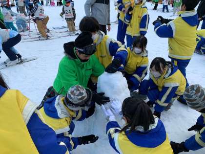 メインのゲレンデでは小学生がスキー実習、その片隅で中学生が無邪気に雪遊び…