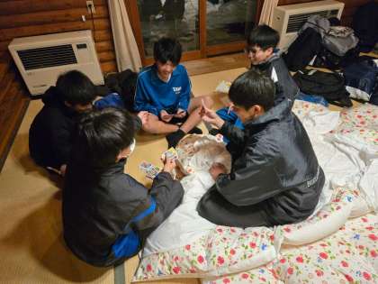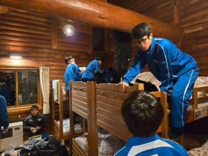 夜の活動・学年レクの時間まで、部屋でのんびり過ごしたり、係の生徒たちがレクのリハーサルを行っています。