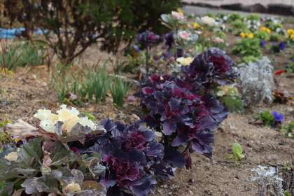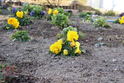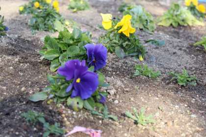 花壇の花たちがさんさに負けずに咲いています。この時期に咲いている花からは、なぜか勇気をもらいます。ただ、地中でも頑張っている植物がいることを考えると、「寒さに身を縮めてばかりじゃダメ。がんばらなきゃ!」と思えてきます。