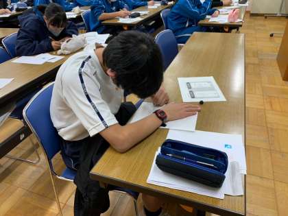 立志式でそれぞれが誓いをたてたあと、クラスごとに部屋に分かれて、親への手紙の時間です。