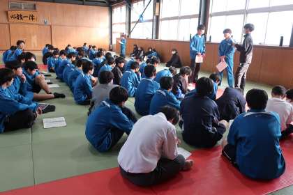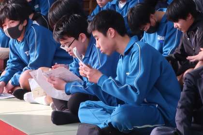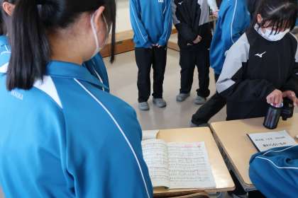 1月31日実施の入学説明会で披露する「歓迎の合唱」の練習に取り組む1年生の様子です。