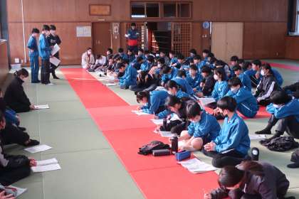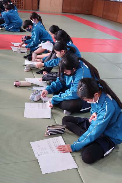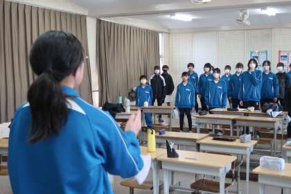 1月31日実施の入学説明会で披露する「歓迎の合唱」の練習に取り組む1年生の様子です。
