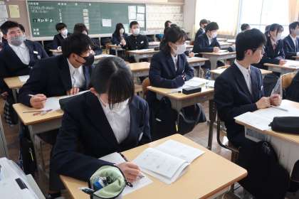 学習診断テストに向けた対策プリントの解説が行われていました。