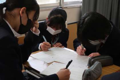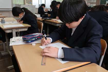 学習診断テストに向けて対策プリントに取り組み、本番に備えていました。