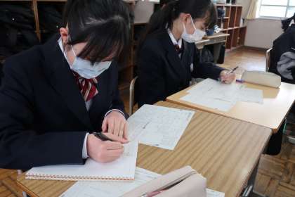 1/27 1-1 直前の弱点補強 3 公開日 2025/01/27 更新日 2025/01/27 各学年から 1年1組の数学の授業の様子です。 明後日に迫った学習診断テストに向けての学習に取り組んでいました。直前の弱点補強です。