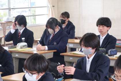 1/27 1-4 シューベルトの「魔王」 3 公開日 2025/01/27 更新日 2025/01/27 各学年から 1年4組の音楽の授業の様子です。 シューベルトの楽曲「魔王」を鑑賞し、曲の雰囲気についてそれぞれが感じたことを述べ合っていました。