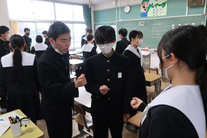 国立高校や私立高校・各種専修学校の入試を終え、幾分気分が晴れやかな3年生。受験勉強から少し離れたこのひと時は、会話もどんどん盛り上がっているように感じました。