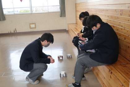 1/28 2-1 思ったとおりに動くかな? 4 公開日 2025/01/28 更新日 2025/01/28 各学年から 2年1組の技術科の授業の様子です。 プログラミング学習の単元で、冬休み前に学習した「情報の制御・計測」の内容を思い出しながら、キットにプログラムを読み込ませていました。